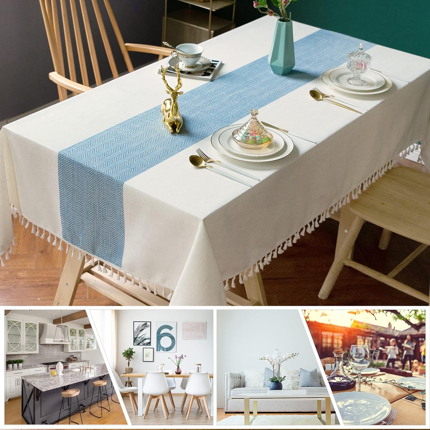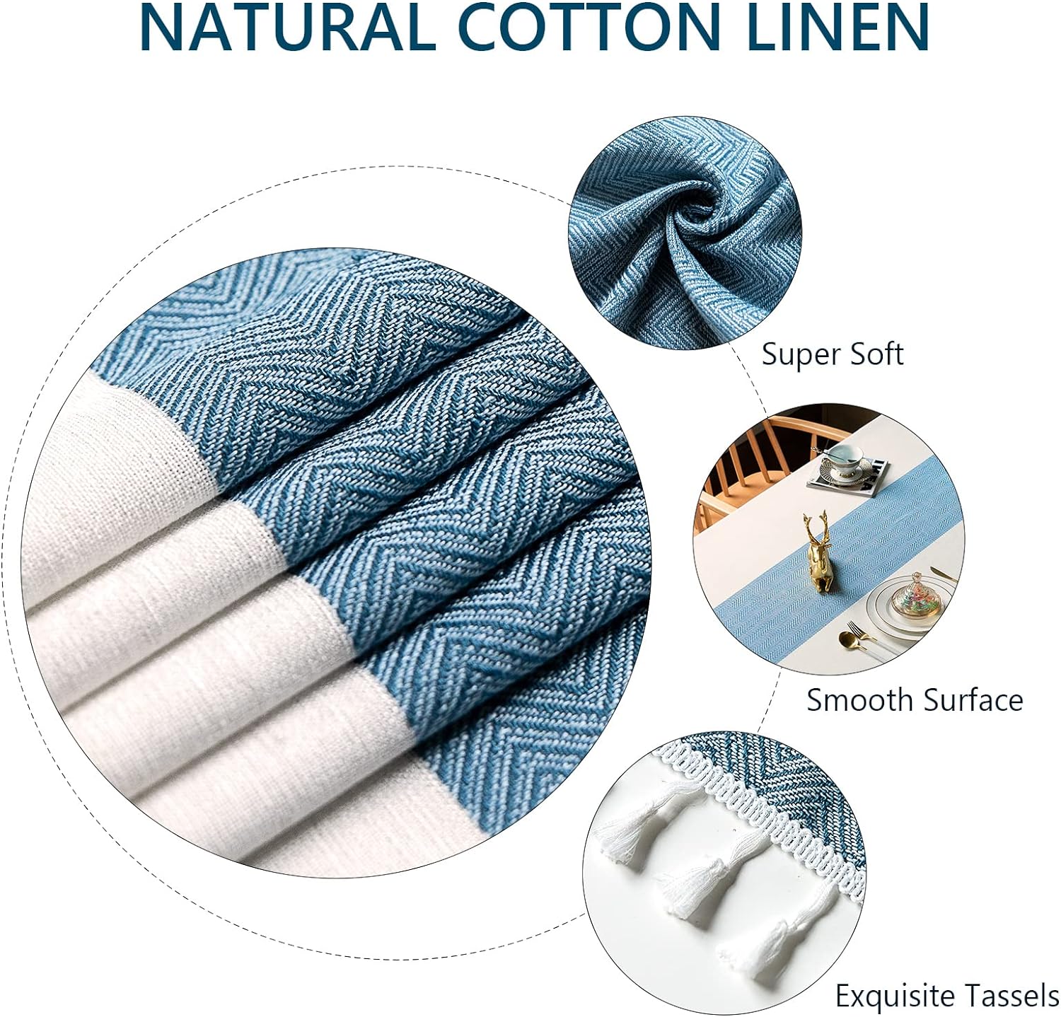 - 【ANTI-WRINKLE & ANTI-SHRINK】: This table cloth is made of high quality eco-friendly heavy Polyester linen, making it soft and smooth, with exquisite tassels to make your table more beautiful