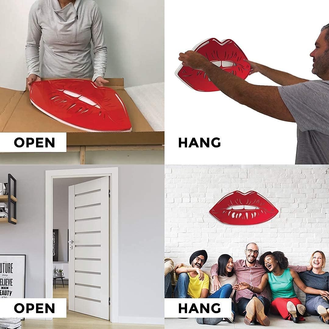 - 👄 REFINED & SEXY – You’ll love the vibrant mirror finish on this iconic statement piece of 3D wall art for your home, apartment or dorm room. The playful slight bite effect is subtly sexy while still being classy and tasteful. The teeth and 3D effects show white regardless of your wall color.