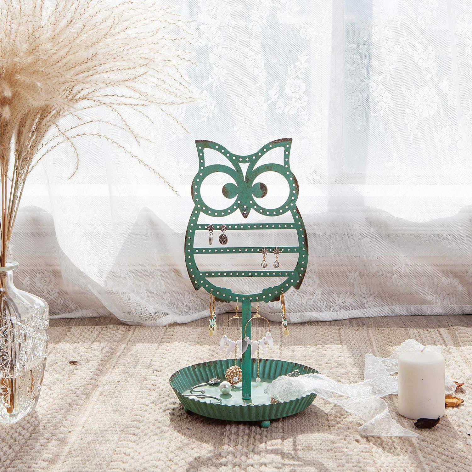 - [GREAT WORKMANSHIP AND UNIQUE OWL DESIGN] – Special owl shape earring holder made of durable metal. Our jewelry organizer is painted, not easy to rust. It fits easily on any tabletop, nightstand, dresser, vanity. Reasonably spaced and neatly arranged keeps your earrings from crowding, and makes your earrings at a glance. Measures approx. 7.68 x 7.68 x 13.19 inches