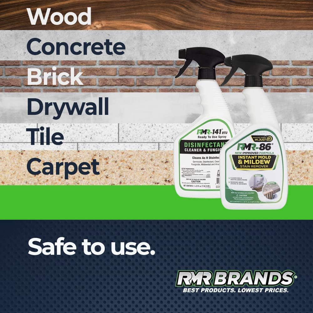 - TWO FAST-ACTING FORMULAS: The ultimate mold prevention kit, our bundle includes 1 spray bottle of RMR-86 and 1 spray bottle of RMR-141 RTU to kill mold and mildew instantly while lifting difficult stains that are left behind