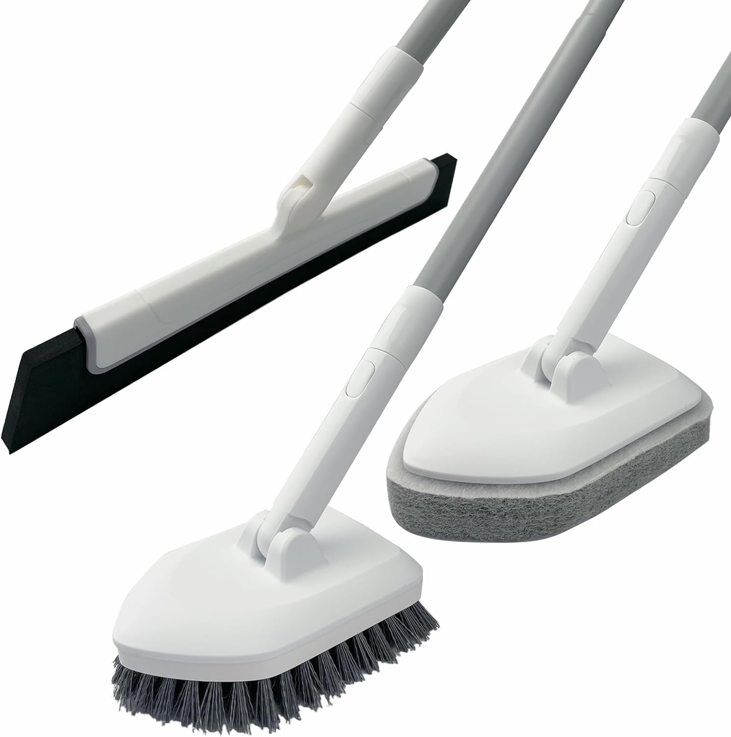 • 3-in-1 Cleaning Power: This shower scrubber comes with three detachable high-quality cleaning heads – hard bristles brush, scrub sponge, and floor squeegee. Ideal for various cleaning tasks around the home, including floors, bathrooms, tubs, walls, glass, and more.